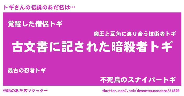 | ヒーロー風カッコイイあだ名 | 『ネオトギ』『銀牙騎士トギ』 |