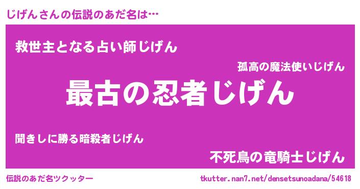 | 意味不明あだ名 | 『住所不定無職じげん(14歳)』『自称じげん』 |