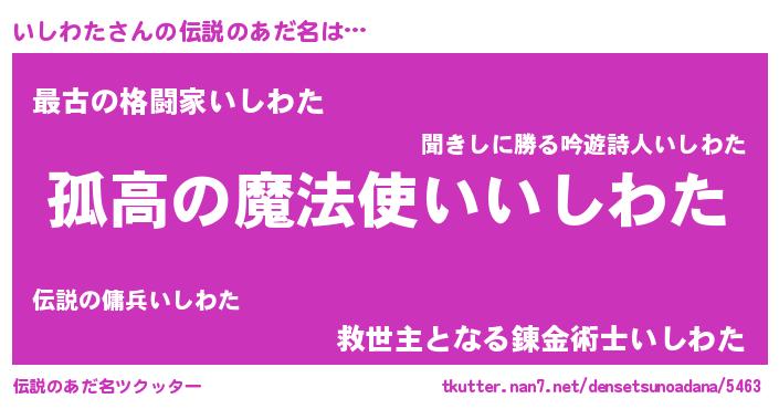 | 意味不明あだ名 | 『とにかく怪しいいしわた』 |
