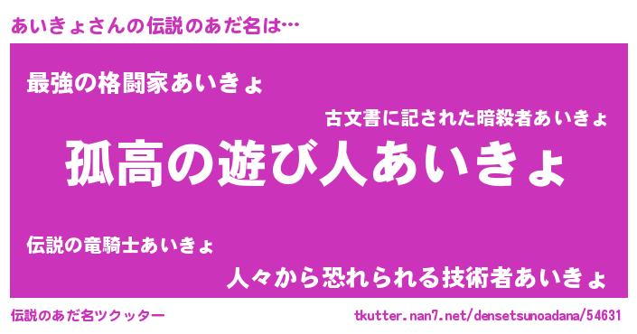 | 意味不明あだ名 | 『住所不定無職あいきょ(77歳)』 |
