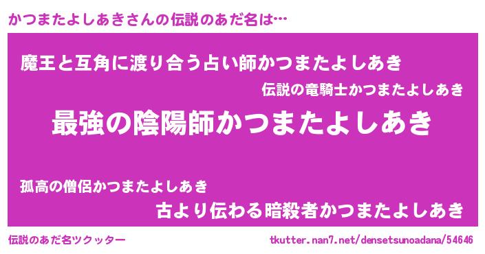| 意味不明あだ名 | 『自称かつまたよしあき』 |