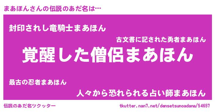 | 男性向けラノベタイトル風あだ名 | 『まあほん~年齢イコール彼女いない歴の魔法使い~』 |