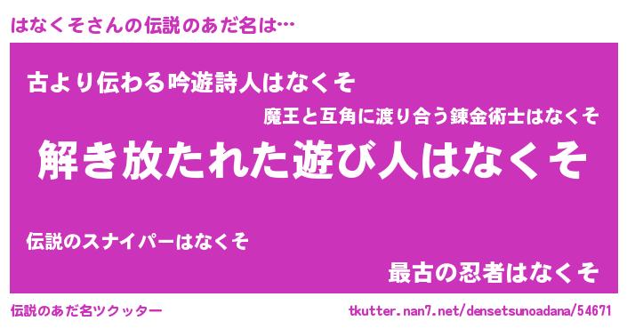 | 意味不明あだ名 | 『自称はなくそ』『永久保存はなくそ』 |