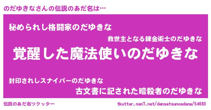 | 女子向けラノベタイトル風あだ名 | 『のだゆきなストレイドッグス』 |