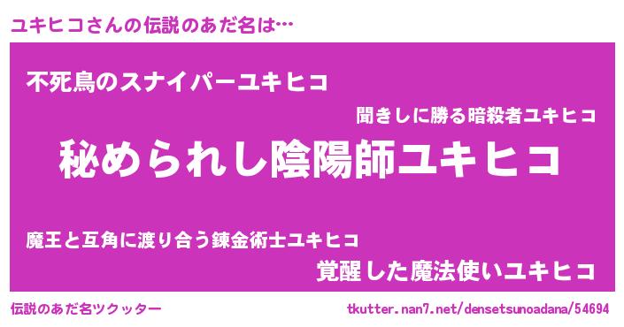| ヒーロー風カッコイイあだ名 | 『ウルトラユキヒコマン』『炎刃騎士ユキ』 |