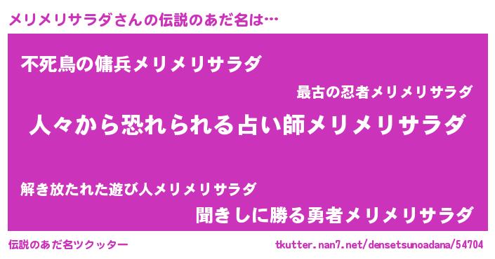 | 欧米人風あだ名 | 『ダニエルメリメリサラダ』 |