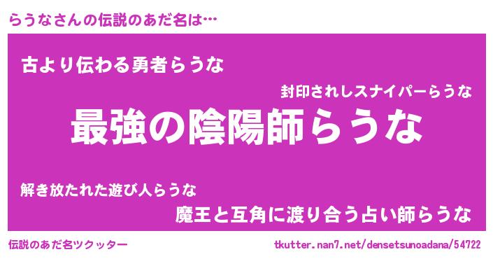 | 意味不明あだ名 | 『つくし科らうな属』『永久保存らうな』 |
