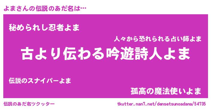 | ファンタジー風あだ名 | 『ゼヨマトゥ』『ヨマディッシュ』 |