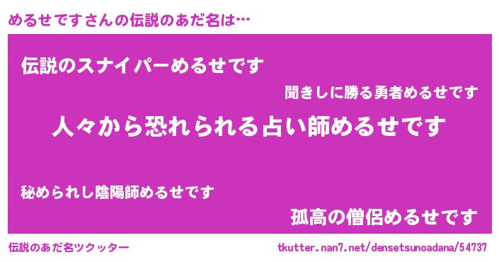 | ヘコむあだ名 | 『めるにゅー』『める太郎』『牛乳』 |