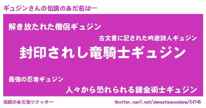 | ヒーロー風カッコイイあだ名 | 『スーパーギュジン』『銀牙騎士ギュ』 |