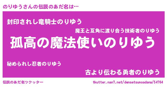 | 女子向けラノベタイトル風あだ名 | 『のりゆうは平凡を望む』『闇ののりゆう』 |