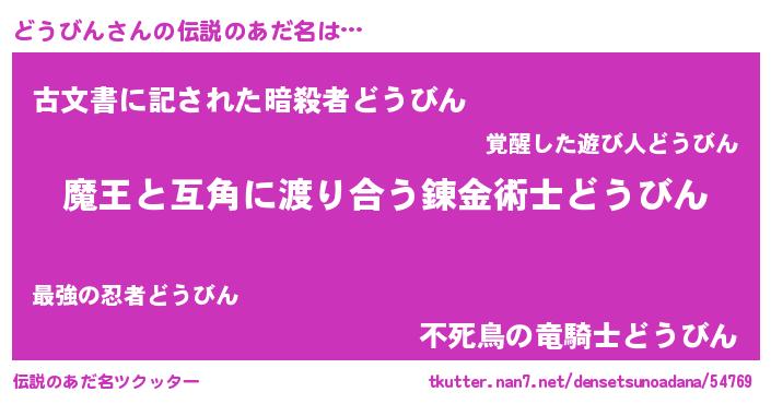 | ヒーロー風カッコイイあだ名 | 『愛の使者どうびん』『ネオドウビン』 |