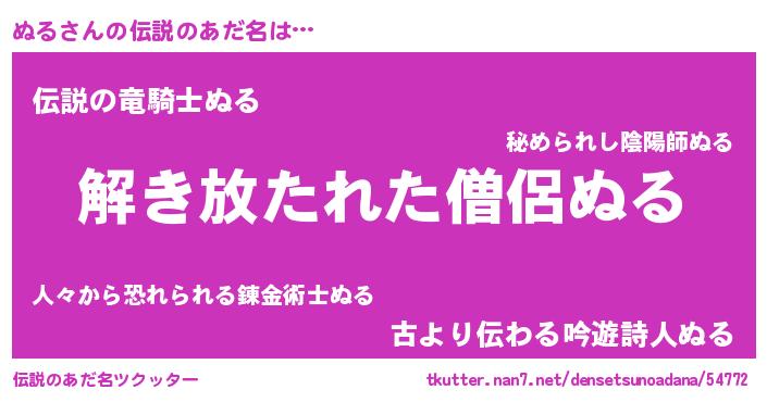 | 女子向けラノベタイトル風あだ名 | 『ぬるの卵を拾いまして』『闇のぬる』 |