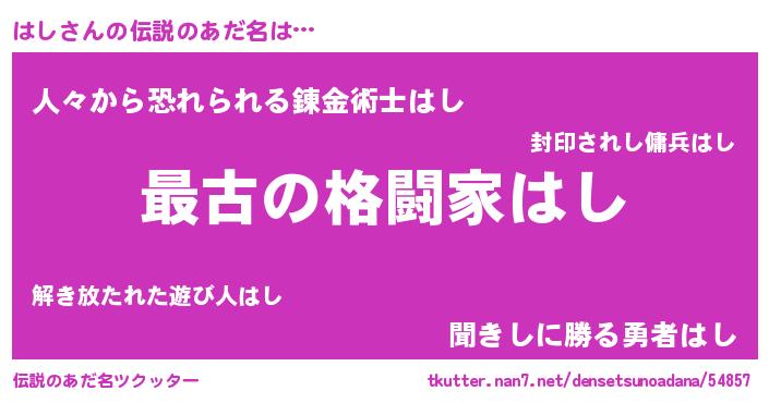 | 女子向けラノベタイトル風あだ名 | 『はし伯爵の花嫁』『死神はしの再婚』 |