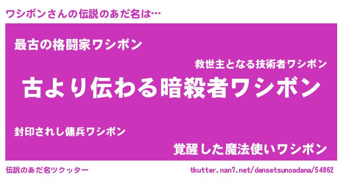 | 胡散臭い通販商品みたいなあだ名 | 『来世でも幸せになれる健康食品…その名も「ワシボン」』 |
