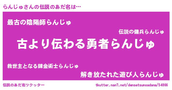 | 男性向けラノベタイトル風あだ名 | 『魔弾の王とらんじゅ』 |