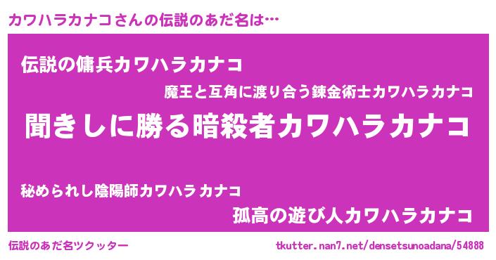 | 意味不明あだ名 | 『永久保存カワハラカナコ』 |