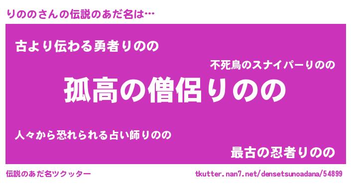 | 男性向けラノベタイトル風あだ名 | 『ダンジョンにりののを求めるのは間違っているだろうか』 |