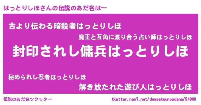 | 男性向けラノベタイトル風あだ名 | 『ハットリシホアートオンライン』 |