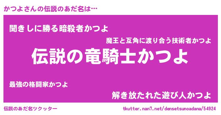 | ヒーロー風カッコイイあだ名 | 『スーパーカツヨ』『仮面カツダー』 |