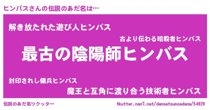 | 意味不明あだ名 | 『自称ヒンバス』『ヒンバスフォーエバー』 |