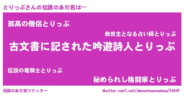| 意味不明あだ名 | 『永久保存とりっぷ』『自称とりっぷ』 |