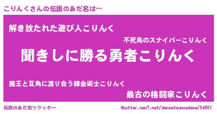 | ヘコむあだ名 | 『こりんく(遠い目)』『こりぷりん』 |