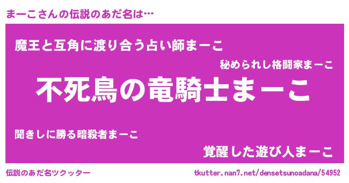 | 意味不明あだ名 | 『住所不定無職まーこ(13歳)』『自称まーこ』 |