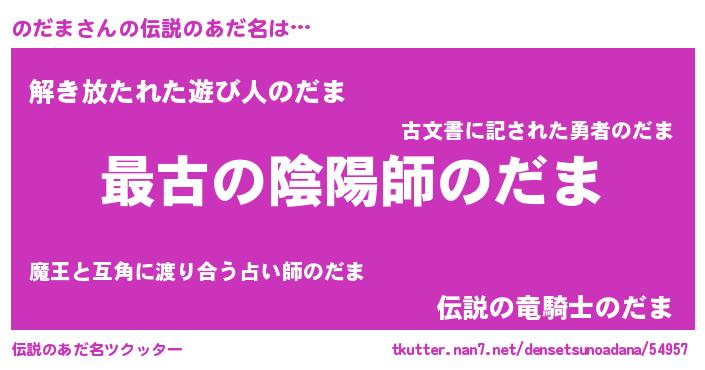 | 意味不明あだ名 | 『自称のだま』『もやし科のだま属』 |