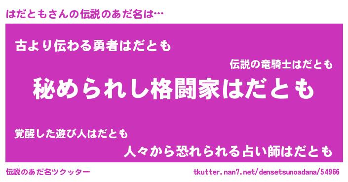 | ヒーロー風カッコイイあだ名 | 『超時空戦士ハダトモ』『仮面ハダダー』 |