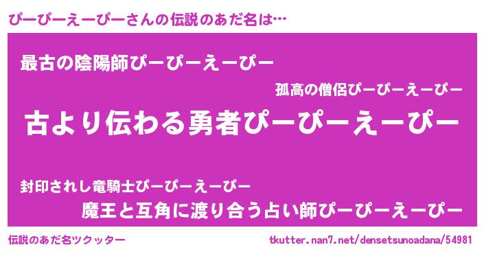 | 胡散臭い通販商品みたいなあだ名 | 『来世でも幸せになれる水素水…その名も「ぴーぴーえーぴー」』 |