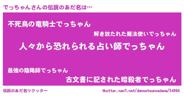 | 意味不明あだ名 | 『住所不定無職でっちゃん(53歳)』 |