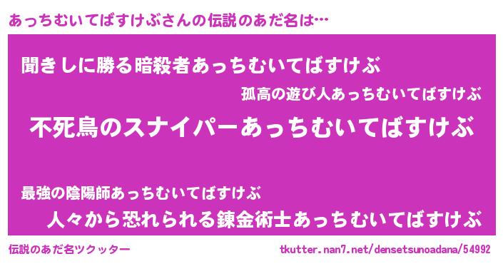 | ヒーロー風カッコイイあだ名 | 『スーパーアッチムイテバスケブ』 |