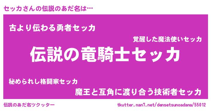 | ヒーロー風カッコイイあだ名 | 『スーパーセッカ』『ウルトラ戦士セッカ』 |