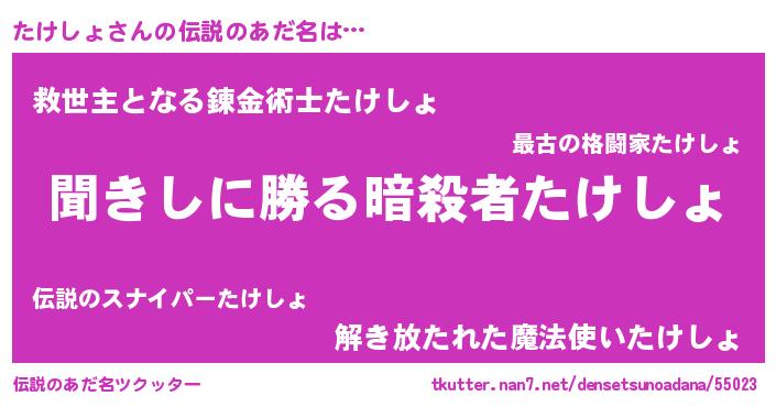 | 意味不明あだ名 | 『永久保存たけしょ』『自称たけしょ』 |