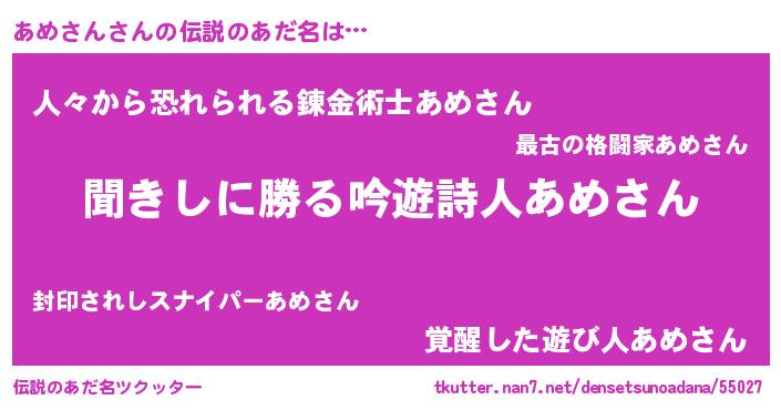 | ヒーロー風カッコイイあだ名 | 『ネオアメサン』『ウルトラ戦士アメサン』 |