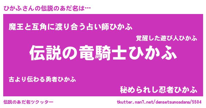 | 自動車の名前っぽいあだ名 | 『フェヒーカ』『ヒカティマ』『ヒンR』 |