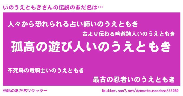 | ヒーロー風カッコイイあだ名 | 『暗黒騎士イノ』『ネオイノウエトモキ』 |