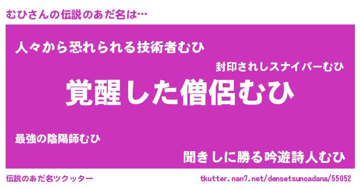 | ヒーロー風カッコイイあだ名 | 『天弓騎士ムヒ』『正義の使者むひ』 |