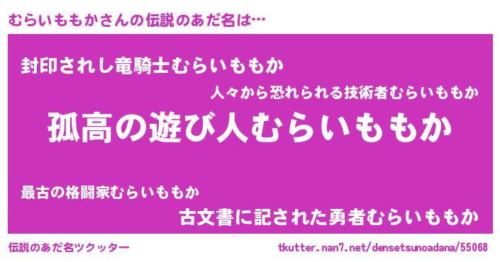 | 女子向けラノベタイトル風あだ名 | 『むらいももかは平凡を望む』 |