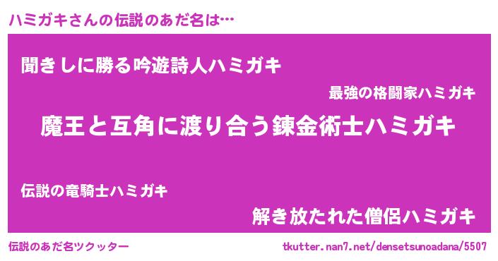 | ヘコむあだ名 | 『ハミガキ(震え声)』『ハミを』 |