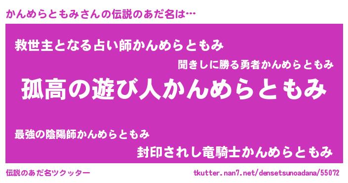 | ヒーロー風カッコイイあだ名 | 『暗黒騎士カン』『ネオカンメラトモミ』 |