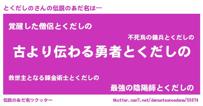 | 男性向けラノベタイトル風あだ名 | 『とくだしのという概念が存在しない退屈な世界 』 |