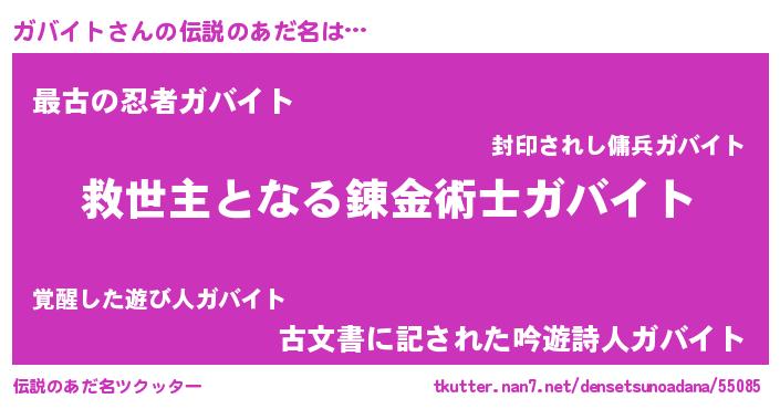 | ヒーロー風カッコイイあだ名 | 『天空の使者ガバイト』『ネオガバイト』 |