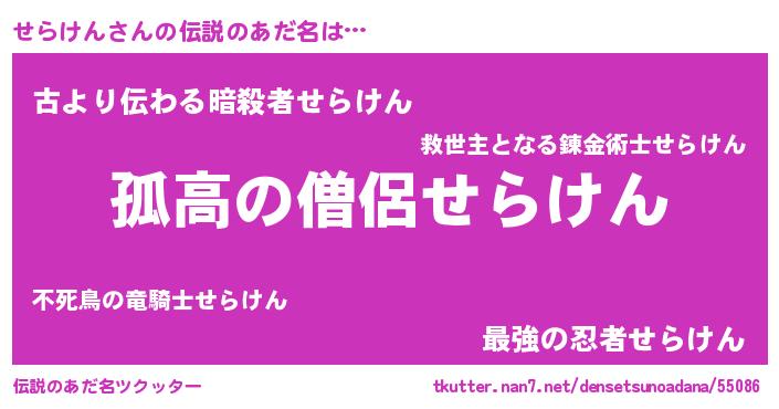 | 男性向けラノベタイトル風あだ名 | 『緋弾のセラケン』『セラケンスレイヤー』 |
