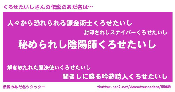 | 意味不明あだ名 | 『住所不定無職くろせたいし(91歳)』 |