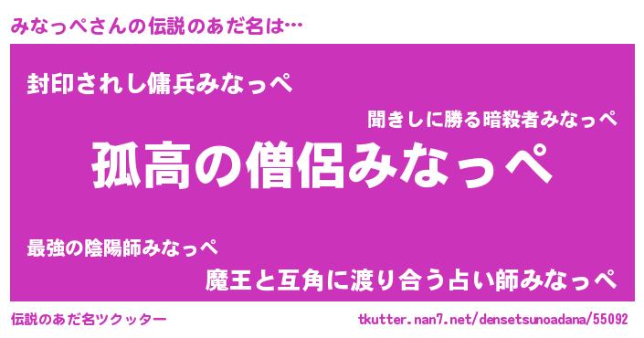 | 意味不明あだ名 | 『住所不定無職みなっぺ(68歳)』 |