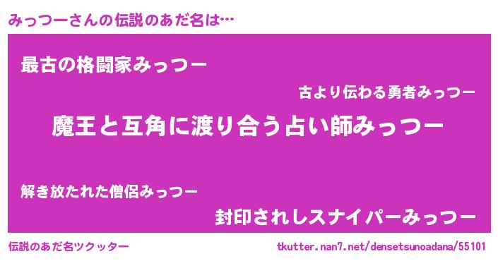 | ヒーロー風カッコイイあだ名 | 『愛の使者みっつー』『スーパーミッツー』 |