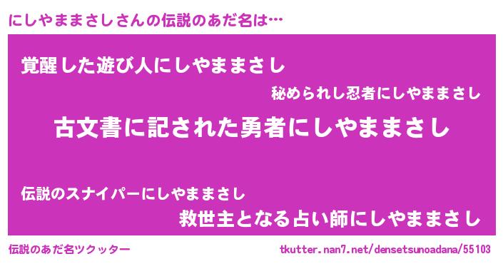 | ヒーロー風カッコイイあだ名 | 『最強戦士ニシヤママサシ』 |