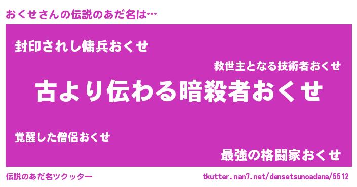| 女子向けラノベタイトル風あだ名 | 『おくせの契約王妃』『闇のおくせ』 |
